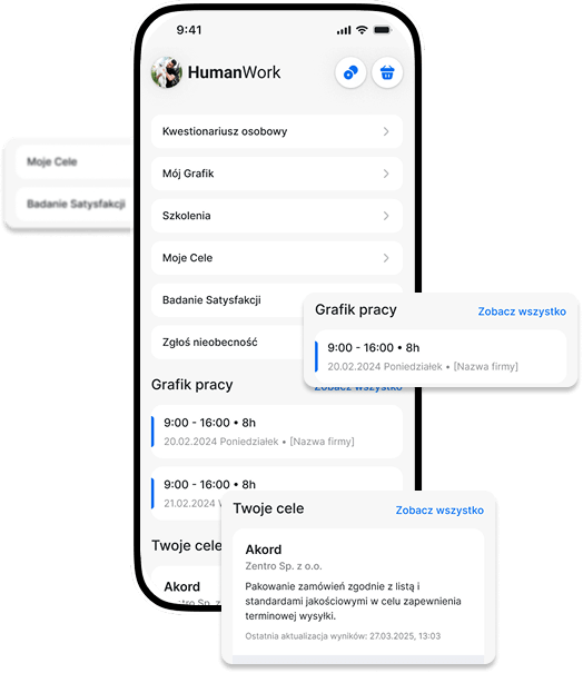 Dzięki Human Work Twoja firma zyskuje lepszą kontrolę, większe zaangażowanie pracowników i niższą rotację – a to przekłada się bezpośrednio na wyższą jakość obsługi i większe zadowolenie klientów.