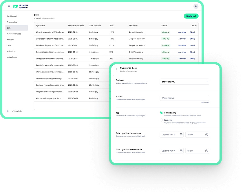 pracowniczeSekcja umożliwia definiowanie, monitorowanie i ocenę indywidualnych celów pracowników tymczasowych.